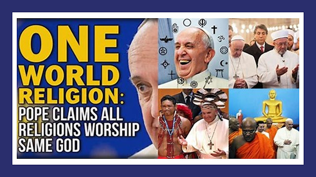 So, why is Pope Francis professing this--Jesus side by side with the other religions, proclaiming that all worship the same God? If all worship the same god, than all religions lead to the same god and eternal life. But that isn't what the Bible teaches as we see in the Gospels and apostolic epistles (letters to the church).